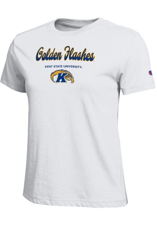 Display your team spirit with this remarkable Kent State Golden Flashes White Script Core Short Sleeve T-Shirt! The Kent State University Short Sleeve Tee showcases a center front printed team name and logo that truly sets it apart. Stand out from the crowd and proudly declare your allegiance to the Flash the Golden Eagle with this exceptional White Kent State University T-Shirt. Fight on for KSU!