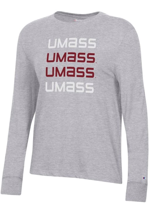 Show your Massachusetts Minutemen spirit in this Umass Grey T-Shirt! This Umass Core Long Sleeve T-Shirt makes a great layer for cooler nights cheering on the Minutemen. Featuring a printed team graphic on full chest, this Massachusetts Minutemen Long Sleeve LS Tee is an essential addition for every fan. Go Umass!