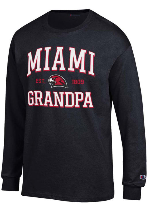 Show your Miami RedHawks spirit in this Miami of Ohio Black T Shirt! This Miami of Ohio Est. Date Grandpa Jersey Long Sleeve T Shirt makes a great layer for cooler nights cheering on the Redhawks. Featuring a printed team graphic on front chest, this Miami RedHawks Long Sleeve Tee is an essential addition for every fan. Go RedHawks!