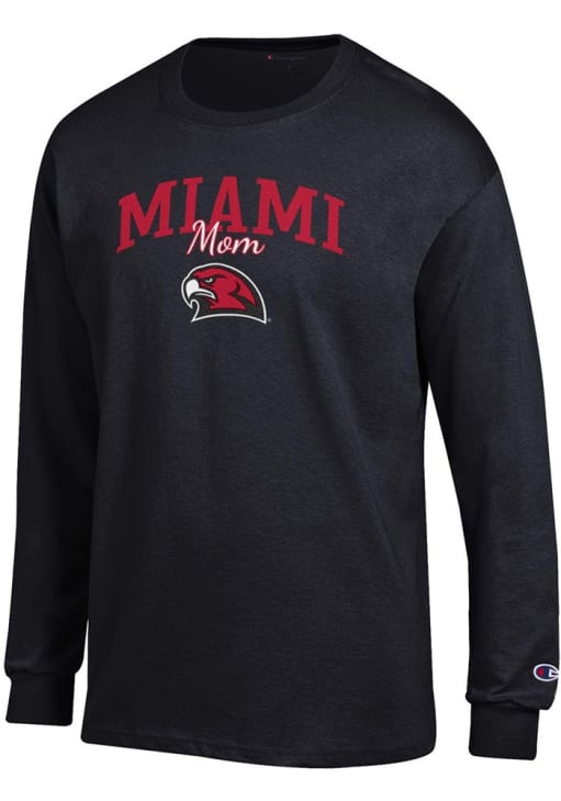 Show your Miami RedHawks spirit in this Miami of Ohio Black T Shirt! This Miami of Ohio Mom Script Jersey Long Sleeve T Shirt makes a great layer for cooler nights cheering on the Redhawks. Featuring a printed team graphic on front chest, this Miami RedHawks Long Sleeve Tee is an essential addition for every fan. Go RedHawks!