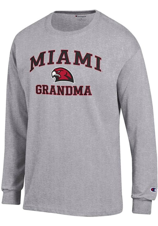 Show your Miami RedHawks spirit in this Miami of Ohio Grey T Shirt! This Miami of Ohio Grandma Jersey Long Sleeve T Shirt makes a great layer for cooler nights cheering on the Redhawks. Featuring a screen print team graphic on front chest, this Miami RedHawks Long Sleeve Tee is an essential addition for every fan. Go RedHawks!