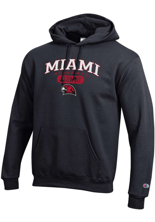 Mens Miami RedHawks Black Champion Pill Box Alumni Powerblend Hooded Sweatshirt