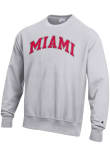 Gear up for the ultimate game day experience with this remarkable Miami RedHawksMens Grey Reverse Weave Crew Sweatshirt! Designed with the true fan in mind, this Redhawks Long Sleeve Crew Sweatshirt features a screen printed 'Miami' wordmark arched on chest. Stay warm and comfortable with this Mens Miami of Ohio Redhawks Crew Sweatshirt.
