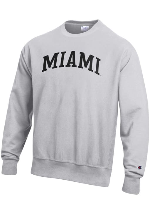 Mens Miami RedHawks Silver Champion Reverse Weave Crew Sweatshirt