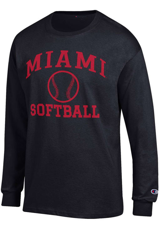 Show your Miami RedHawks spirit in this Miami of Ohio Black T Shirt! This Miami of Ohio Softball Jersey Long Sleeve T Shirt makes a great layer for cooler nights cheering on the Redhawks. Featuring a printed team graphic on front chest, this Miami RedHawks Long Sleeve Tee is an essential addition for every fan. Go RedHawks!