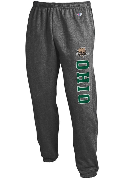 Mens Ohio Bobcats Charcoal Champion Powerblend Closed Bottom Sweatpants
