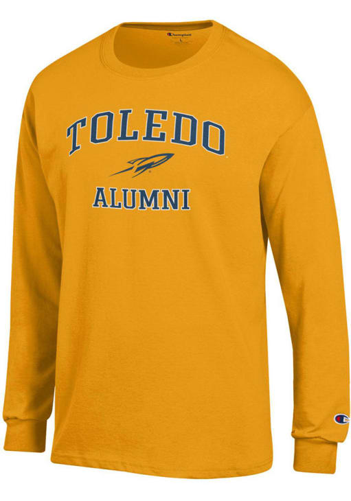 Show your Toledo Rockets spirit in this Toledo Gold T Shirt! This Toledo Mascot Alumni Jersey Long Sleeve T Shirt makes a great layer for cooler nights cheering on the Rockets. Featuring a printed team graphic on front chest, this Toledo Rockets Long Sleeve Tee is an essential addition for every fan. Go Rockets!