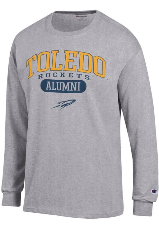 Show your Toledo Rockets spirit in this Toledo Grey T Shirt! This Toledo Pill Box Alumni Jersey Long Sleeve T Shirt makes a great layer for cooler nights cheering on the Rockets. Featuring a printed team graphic on front chest, this Toledo Rockets Long Sleeve Tee is an essential addition for every fan. Go Rockets!