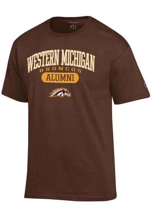 Display your team spirit with this remarkable Western Michigan Broncos Champion Brown Pill Alumni Jersey Short Sleeve T Shirt! The WMU Broncos Short Sleeve Tee showcases a printed team graphic that truly sets it apart. Stand out from the crowd and proudly declare your allegiance to the Broncos with this exceptional Brown WMU Broncos T Shirt. Go Broncos!
