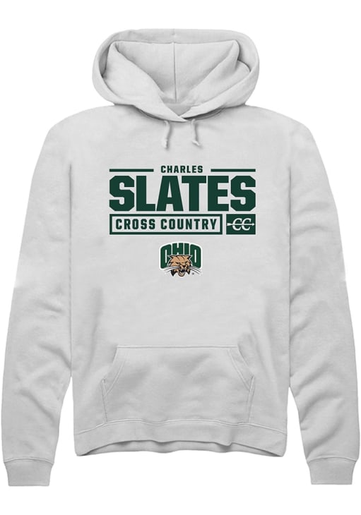 Charles Slates Rally Mens White Ohio Bobcats NIL Stacked Box Hooded Sweatshirt