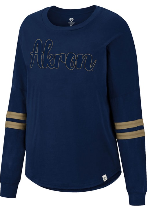 Show your Akron Zips spirit in this Akron Zips Navy Blue T-Shirt! This Akron Zips Earth First Long Sleeve T-Shirt makes a great layer for cooler nights cheering on the Zips. Featuring a applique team name on center chest, this Akron Zips Long Sleeve LS Tee is an essential addition for every fan. Go Zips!