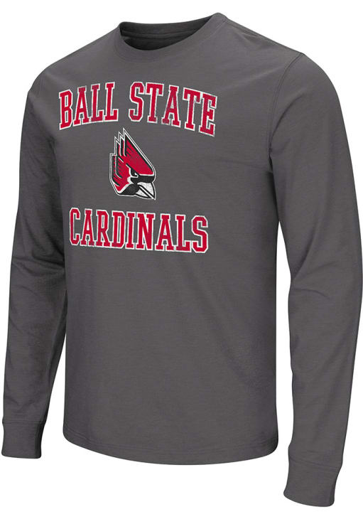 Show your Ball State Cardinals spirit in this Ball State Charcoal T Shirt! This Ball State Playbook Number One Long Sleeve T Shirt makes a great layer for cooler nights cheering on the Cardinals. Featuring a distressed screen print of Ball State arched over team logo with team name below, this Ball State Cardinals Long Sleeve Tee is an essential addition for every fan. Go Cardinals!