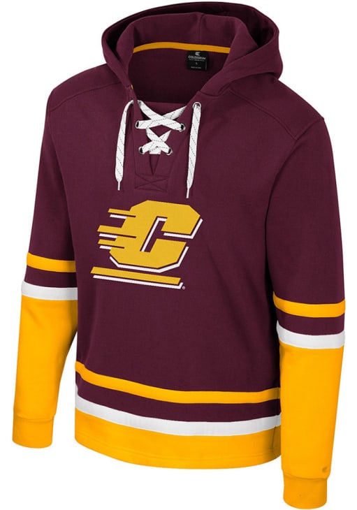 Embrace your Chippewas pride and showcase your team spirit with confidence in this Central Michigan Chippewas Long Sleeve Hoodie! Stay warm and stylish with the CMU Chippewas Mens Maroon Ringing Lace Up Hockey Hooded Sweatshirt. Designed with team logo tackle twill embroidered on chest, this Chippewas Long Sleeve Hoodie is a must-have for dedicated fans.