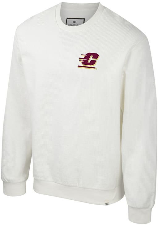 Gear up for the ultimate game day experience with this remarkable Central Michigan ChippewasMens White Agent Ribbed Crew Sweatshirt! Designed with the true fan in mind, this Chippewas Long Sleeve Crew Sweatshirt features a team logo embroidered with satin stitch on left chest. Stay warm and comfortable with this Mens CMU Chippewas Chippewas Crew Sweatshirt.