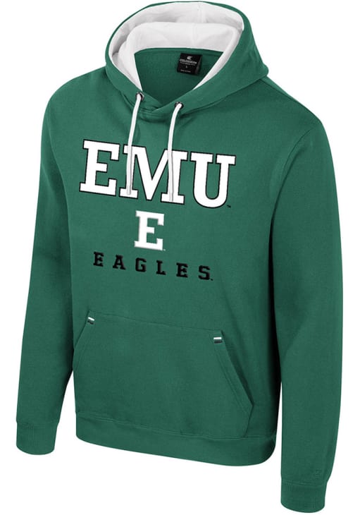Embrace your Eagles pride and showcase your team spirit with confidence in this Eastern Michigan Eagles Long Sleeve Hoodie! Stay warm and stylish with the Eastern Michigan Mens Green Zion Hooded Sweatshirt. Designed with team graphic twill applique on front chest, this Eagles Long Sleeve Hoodie is a must-have for dedicated fans.