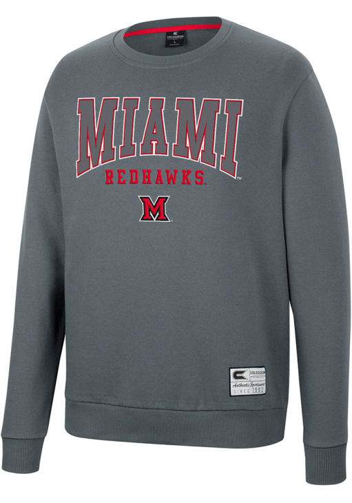 Gear up for the ultimate game day experience with this remarkable Miami RedHawksMens Charcoal Scholarship Fleece Crew Sweatshirt! Designed with the true fan in mind, this Redhawks Long Sleeve Crew Sweatshirt features a twill applique team name and logo on front chest. Stay warm and comfortable with this Mens Miami of Ohio Redhawks Crew Sweatshirt.