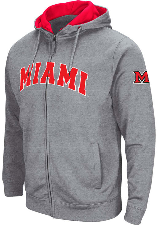Embrace your Redhawks spirit with pride in this Miami RedHawks Long Sleeve Full Zip Jacket. This Mens Grey Henry Fleece Long Sleeve Full Zip showcases a team name applique on front chest with team logo applique on left sleeve. You'll want to wear this Miami RedHawks Long Sleeve Full Zip Jacket every day.