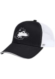Product Details Product Details Colosseum Trucker HatFront embroidered team logoGarment washed cotton crown and visorContrast trucker meshBack team nameSnap closureCotton/Poly BlendCurved BillLow CrownUnstructuredWipe clean with cloth or cleaning kitImported Officially Licensed This Black Huskies Adjustable Hat features a 3D embriodered logo on a mid profile crown and snap adjustable closure.