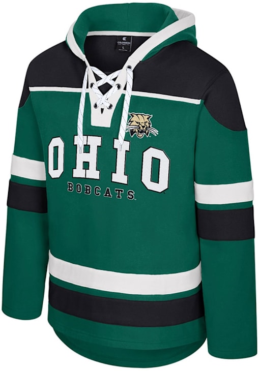 Embrace your Bobcats pride and showcase your team spirit with confidence in this Ohio Bobcats Long Sleeve Hoodie! Stay warm and stylish with the Ohio Mens Green Rivalry Hockey Hooded Sweatshirt. Designed with embroidered logo and wordmark center chest, this Bobcats Long Sleeve Hoodie is a must-have for dedicated fans.
