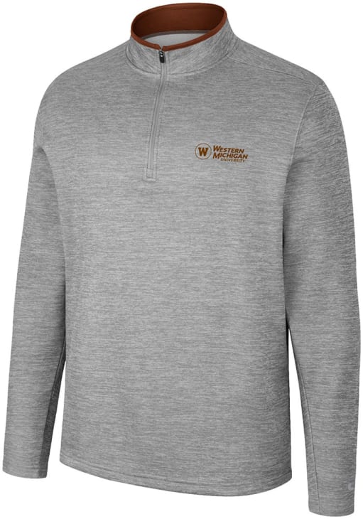 Embrace the warmth and showcase your Broncos pride with our Western Michigan Broncos Long Sleeve Qtr Zip Pullover. This Mens Grey Chase Long Sleeve Pullover offers a rubberized team logo on left chest with team name insert on back neck for the perfect combination of comfort and style. Elevate your everyday look with this must-have Western Michigan Broncos Long Sleeve Qtr Zip Pullover.