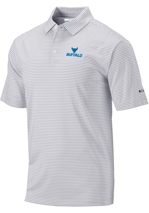 Mens Buffalo Bulls Grey Columbia Invite Stripe Short Sleeve Polo Shirt