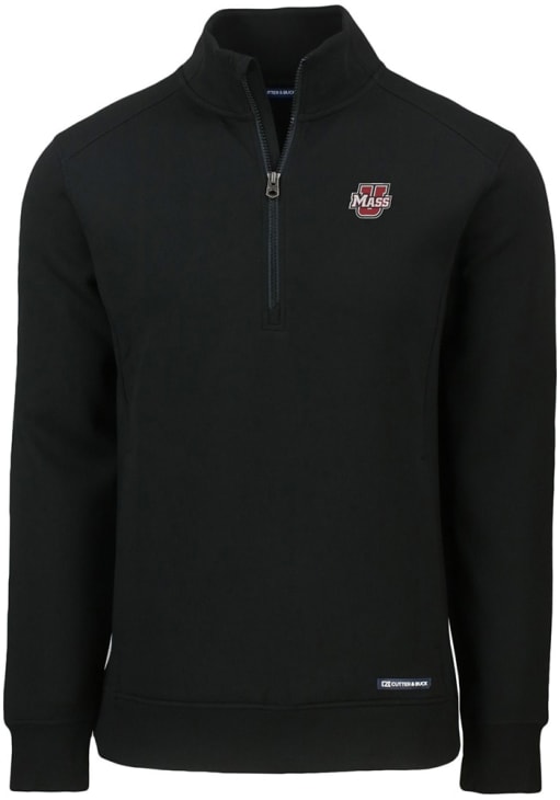 Mens Massachusetts Minutemen Black Cutter and Buck Roam Qtr Zip Pullover