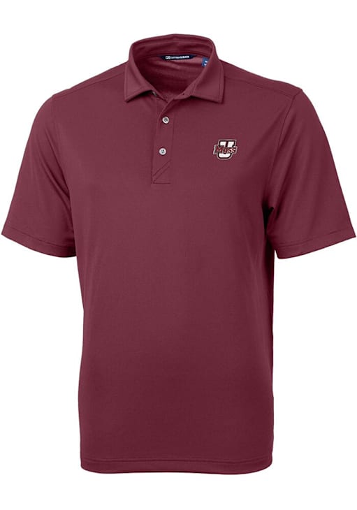 Mens Massachusetts Minutemen Red Cutter and Buck Virtue Eco Pique Short Sleeve Polo Shirt