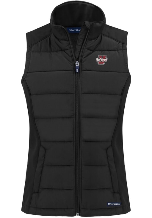 Gear up for the upcoming tailgate with the ultimate Massachusetts Minutemen Womens Black Vest. Stay warm in this Umass Evoke Sleeveless Jacket, which features a 100% recycled polyester bonded honeycomb softshell.