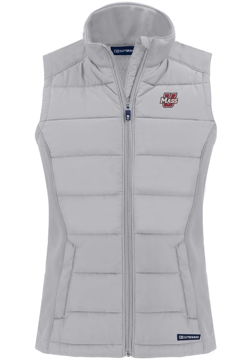 Gear up for the upcoming tailgate with the ultimate Massachusetts Minutemen Womens Charcoal Vest. Stay warm in this Umass Evoke Sleeveless Jacket, which features a 100% recycled polyester bonded honeycomb softshell.