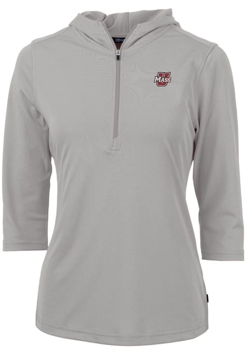 Embrace your Minutemen pride and showcase your team spirit with confidence in this Massachusetts Minutemen Long Sleeve Hoodie! Stay warm and stylish with the Umass Womens Grey Virtue Eco Pique Hooded Sweatshirt. Designed with moisture wicking material, this Minutemen Long Sleeve Hoodie is a must-have for dedicated fans.
