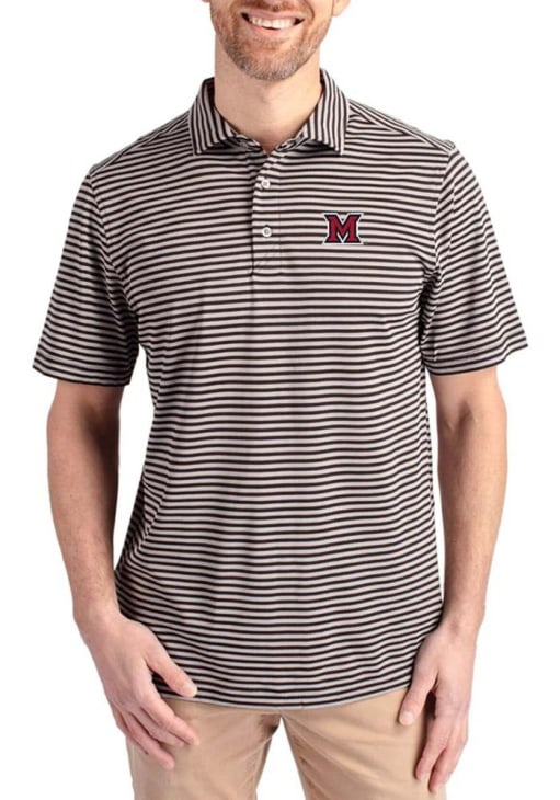 Enhance your professional style with this striking Black Big and Tall Polo! Showcase your team pride among colleagues with this exceptional Miami of Ohio Black Virtue Eco Pique Stripe Big and Tall Golf Shirt. Stand out and make a statement in this Miami RedHawks Big and Tall Golf Shirt, featuring a stripe pattern that adds a touch of distinction to your look.