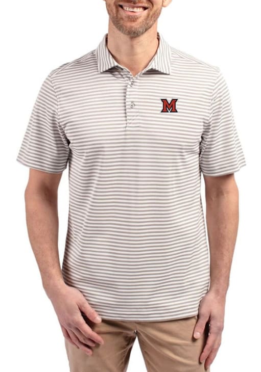 Enhance your professional style with this striking Grey Big and Tall Polo! Showcase your team pride among colleagues with this exceptional Miami of Ohio Grey Virtue Eco Pique Stripe Big and Tall Golf Shirt. Stand out and make a statement in this Miami RedHawks Big and Tall Golf Shirt, featuring a stripe pattern that adds a touch of distinction to your look.