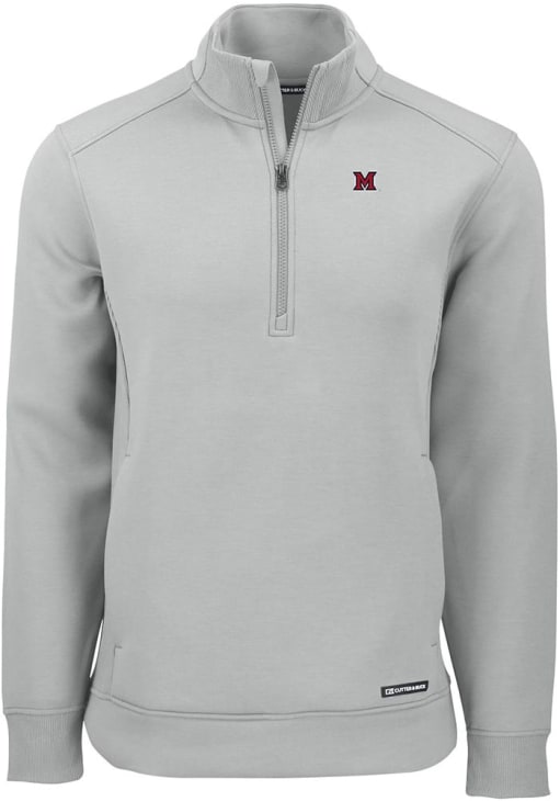 Mens Miami RedHawks Ash Cutter and Buck Roam Qtr Zip Pullover
