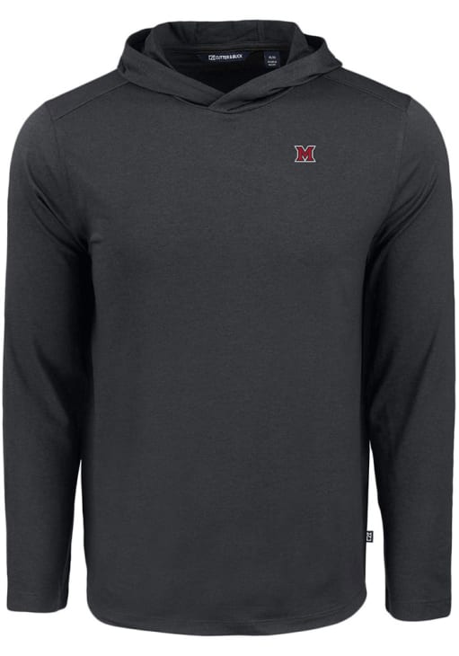 Mens Miami RedHawks Black Cutter and Buck Coastline Eco Hooded Sweatshirt