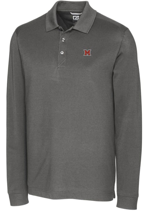 Make a bold statement in this Miami RedHawks Cutter and Buck Mens Grey Advantage Pique Long Sleeve Long Sleeve Polo! This Polo features a high quality tri-blend pique that combines super soft cotton with DryTec polyester and spandex, making this Mens Long Sleeve Polo Shirt perfect for any Miami of Ohio fan who wants to display their spirit in any setting.