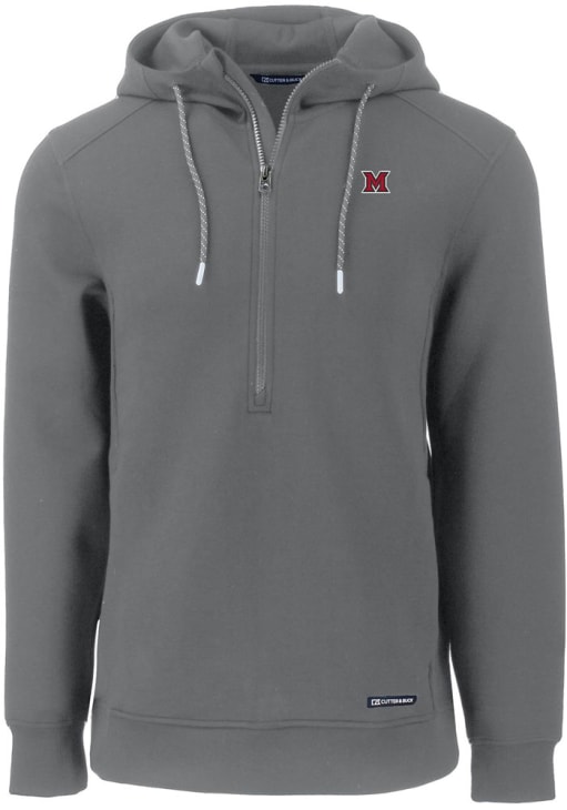 Mens Miami RedHawks Grey Cutter and Buck Roam Hooded Sweatshirt