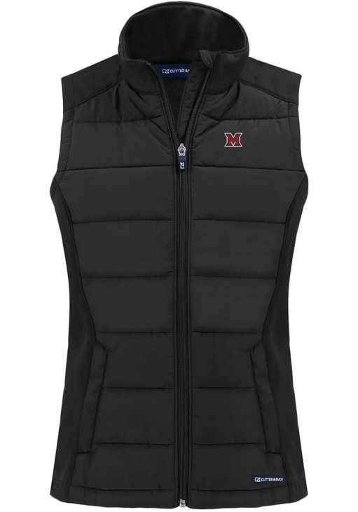 Gear up for the upcoming tailgate with the ultimate Miami RedHawks Womens Black Vest. Stay warm in this Miami of Ohio Evoke Sleeveless Jacket, which features a 100% recycled polyester bonded honeycomb softshell.
