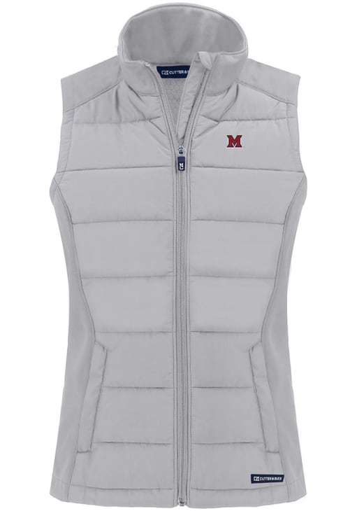 Gear up for the upcoming tailgate with the ultimate Miami RedHawks Womens Charcoal Vest. Stay warm in this Miami of Ohio Evoke Sleeveless Jacket, which features a 100% recycled polyester bonded honeycomb softshell.