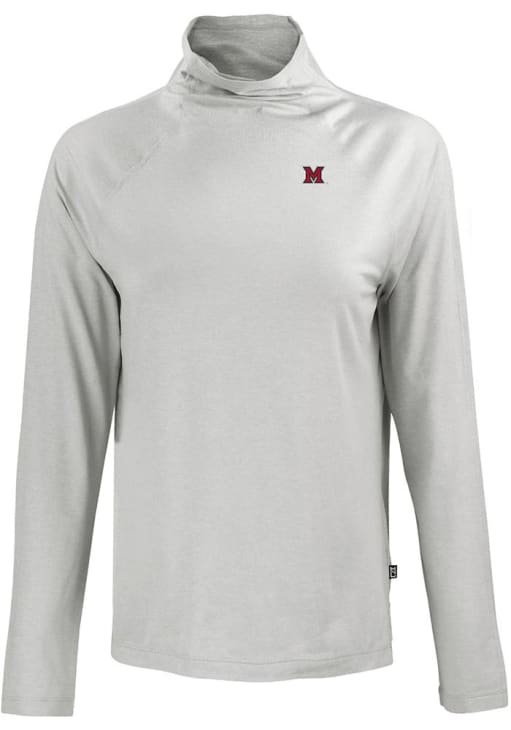 Womens Miami RedHawks Grey Cutter and Buck Coastline Eco Funnel Neck Crew Sweatshirt