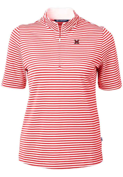 Womens Miami RedHawks Red Cutter and Buck Virtue Eco Pique Stripe Short Sleeve Polo Shirt
