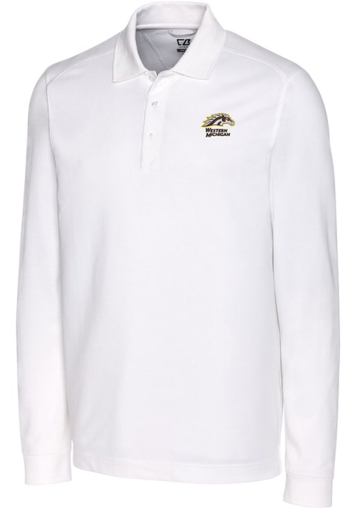 Make a bold statement in this Western Michigan Broncos Cutter and Buck Mens White Advantage Long Sleeve Long Sleeve Polo! This Polo features a knit pique with soft wash finish, making this Mens Long Sleeve Polo Shirt perfect for any WMU Broncos fan who wants to display their spirit in any setting.