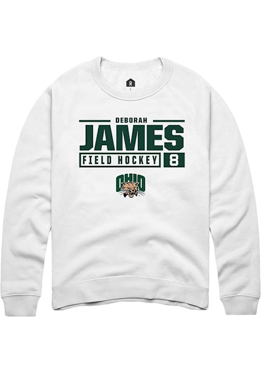 Deborah James Rally Mens White Ohio Bobcats NIL Stacked Box Crew Sweatshirt