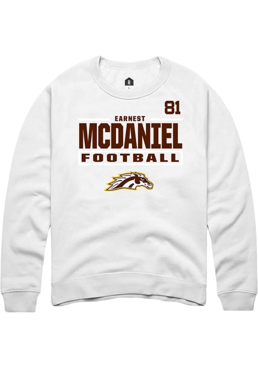 Support your Western Michigan Broncos and favorite Earnest McDaniel in this Western Michigan Broncos Mens White Football NIL Stacked Box Player Crew. This Crew Sweatshirt features a NIL graphic, and is sure to stand out in the stadium. Perfect to wear on game day or any day!