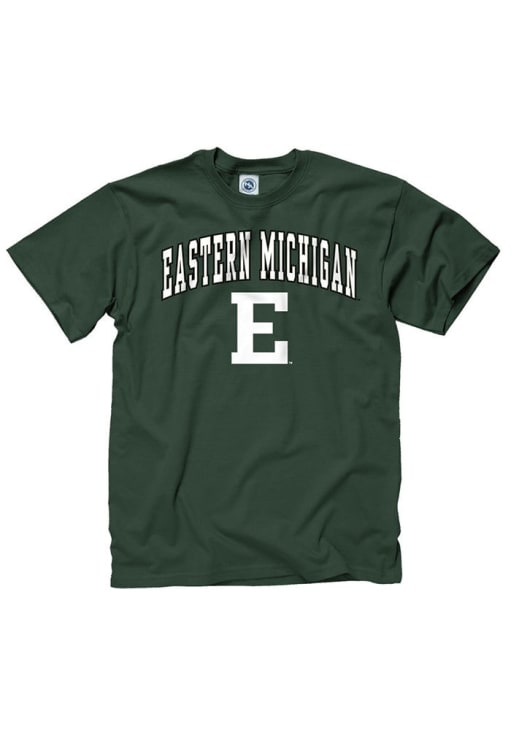 Display your team spirit with this remarkable Eastern Michigan Eagles Green Arch Logo Short Sleeve T Shirt! The Eastern Michigan Short Sleeve Tee showcases a screen printed team wordmark and logo that truly sets it apart. Stand out from the crowd and proudly declare your allegiance to the Eagles with this exceptional Green Eastern Michigan T Shirt. Go Eagles!