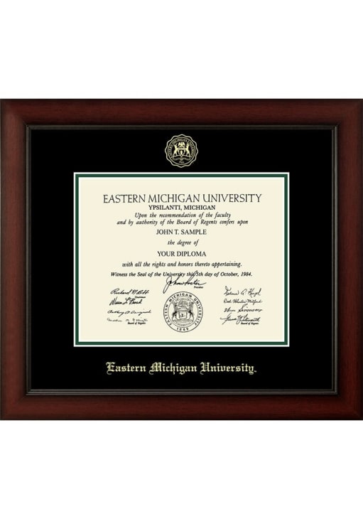 Eastern Michigan Eagles Paxton Diploma Frame is a great way to keep your Eagles memories close. You'll love looking at your favorite Eagles moments with this Diploma Frame, which features a showcase for your Eastern Michigan University diploma in a USA-made frame. Overall Size 18" x 16". Go Eagles!