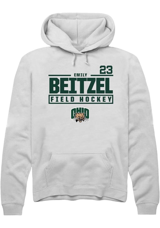 Emily Beitzel Rally Mens White Ohio Bobcats NIL Stacked Box Hooded Sweatshirt