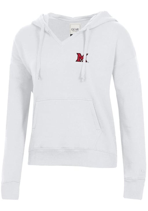 Embrace your Redhawks pride and showcase your team spirit with confidence in this Miami RedHawks Long Sleeve Hoodie! Stay warm and stylish with the Miami of Ohio Womens White Big Cotton Hooded Sweatshirt. Designed with embroidered graphics, this Redhawks Long Sleeve Hoodie is a must-have for dedicated fans.