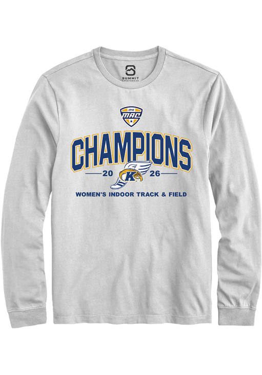 Show your Kent State Golden Flashes spirit in this Kent State University White T Shirt! This Kent State University MAC 2026 Women's Indoor Track & Field Champions Long Sleeve T Shirt makes a great layer for cooler nights cheering on the Flash the Golden Eagle. Featuring a championship team logo, this Kent State Golden Flashes Long Sleeve Tee is an essential addition for every fan. Fight on for KSU!