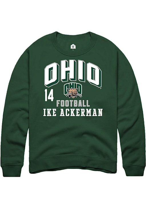 Support your Ohio Bobcats and favorite Ike Ackerman in this Ohio Bobcats Mens Green Football NIL Arch Logo Player Crew. This Crew Sweatshirt features a NIL graphic, and is sure to stand out in the stadium. Perfect to wear on game day or any day!