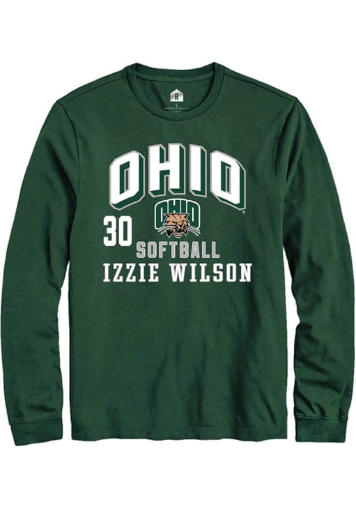 Show your Ohio Bobcats spirit in this Ohio Green T Shirt! This Ohio NIL Arch Logo Long Sleeve T Shirt makes a great layer for cooler nights cheering on the Bobcats. Featuring a custom graphic with player's name and number, this Ohio Bobcats Long Sleeve Tee is an essential addition for every fan. Stand Up and Cheer!
